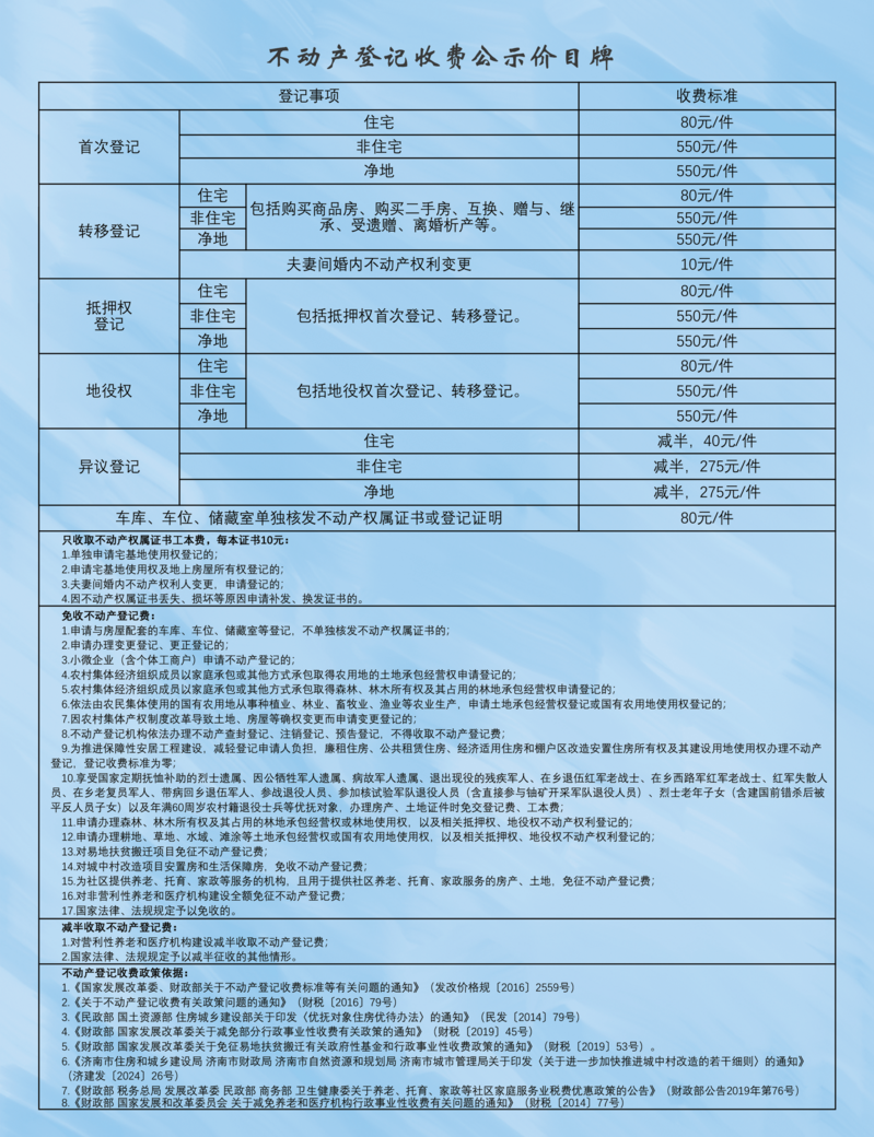 【信息公示】《不动产登记收费公示价目牌》