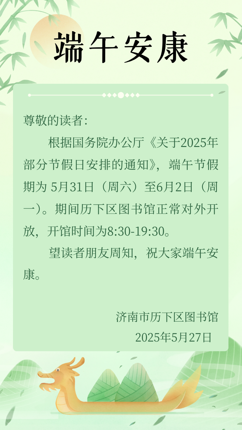 2025年端午节假期开放公告